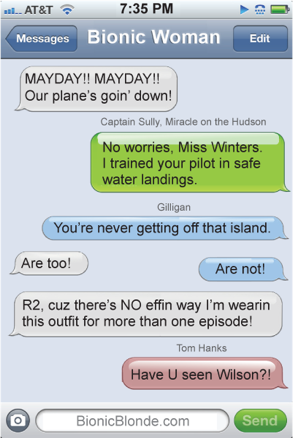 Ladies, gentlemen and Bionic Blondes, welcome aboard! Please observe the fasten seatbelt and no smoking signs, and make sure your seat back and folding trays are in their full upright position.