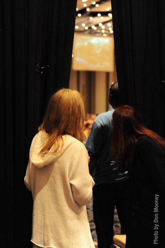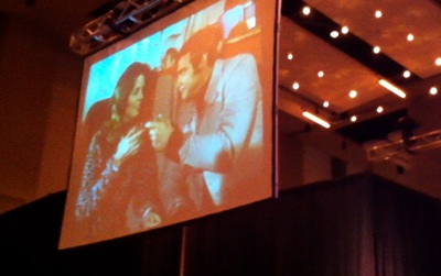 Then came Sunday’s big crossover event at 2:30 pm, with Lindsay and Lee together. This larger ballroom came equipped with some serious jumbo screens. The wizard behind the curtain even remembered to dim the lights this time, so people in the audience could actually see the video, too.