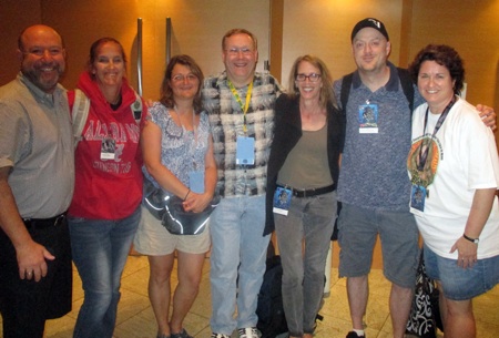 Then alas, it came time to say goodbye. My thanks to everybody who came out to Dragon Con (old friends and new), and for those who couldn’t make it—I hope this blog account and the podcasts were the next best thing to being there. (Photo credit below to Rod De Luca... the bionic fans afterwards. That’s me in the black jacket. Don’t we all look HAPPY?!).