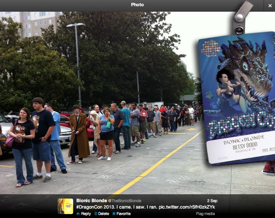 I think it might be a good idea to just change the name of this event to GODZILLA Con. There were over 50,000 people here Labor Day Weekend (not an exaggeration) and I know because I stood in line behind every single one of them (possibly an exaggeration). Anyway, note to management: Please provide cocktails and separate, shorter waiting lines for perimenopausal women who aren't really even sci-fi fans anyway thank you.