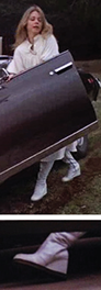 Boot Camp: Anyway, they put Sam and the pretending-to-be-passed-out Jaime in an old Buick and tried to kill them by rolling them down a steep back road over a cliff, but Jaime manages to gain control of the steering wheel and when the brakes fail, she reminds us she still has that “Midas Touch” and can stop a car by swinging open the door and slamming her foot to the pavement. This time it didn’t appear to destroy the heel of her lovely white wedgie boots, so I’m figuring she must have titanium specially built into all her footwear now in anticipation of these annoying braking emergencies.