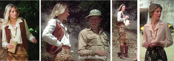 Which Exit Is The Mall? The suitcase I saw Jaime carrying was much too small to pack all the outfits she wore this week, so before heading out into the wild savannah on her mission, she apparently had time to stop by the local Banana Republic store and pick up a few new ensembles, including an awesome safari outfit that would make even the staff at Born Free envious.