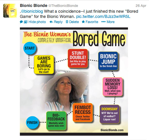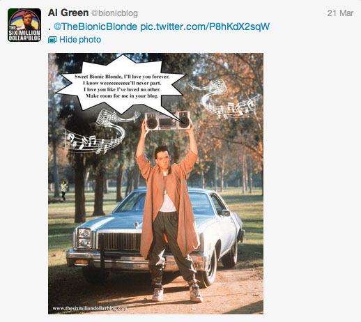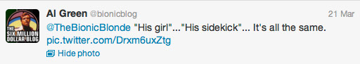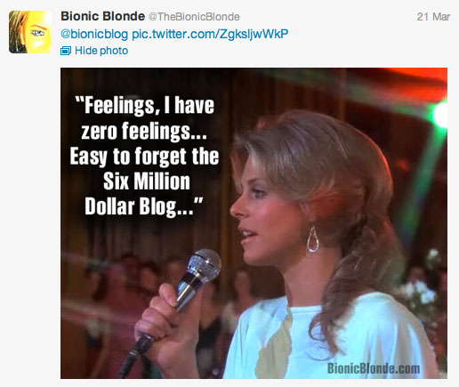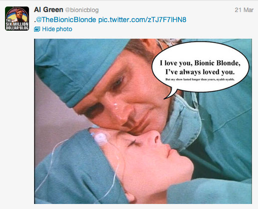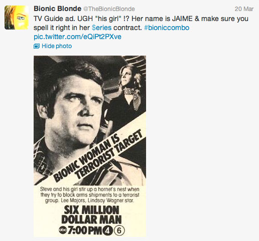 If you happen to follow The Bionic Blonde and The Six Million Dollar Blog (@bionicblog) on Twitter, you’ve probably been noticing a little accidental subplot emerging.