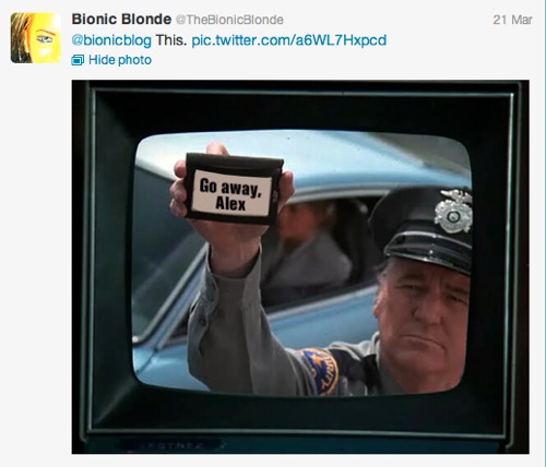 The bionic competition is getting fierce out there again, kids. Naturally, I’m pretty sure The Bionic Woman is winning this by a mile. (Sorry Steve!) And please keep in mind that I adore Alex Green and have no immediate plans to stab his eyes out. Unless Twitter happens to offer that feature later on.