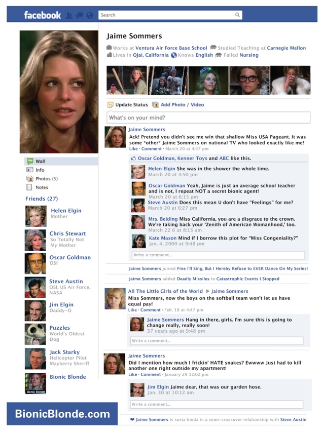 Jaime Sommers’ Lost Facebook Page (1x02)