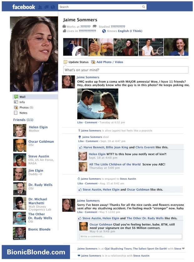 Jaime Sommers’ Lost Facebook Page (1x01)