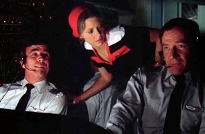 Put down those controls boys. It's time to eat! The pilots are struggling to gain control of the plane, so Miss Winters chooses this moment of crisis to come into the cockpit and serve them their crummy boxed dinners, too! But oh dear, turns out this storm is really serious and the pilot tells her go back and lie to the passengers that everything is just fine.