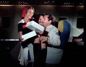 Again, Miss Winters sells the quality of their food to their customers, with an insincere smile and an apologetic "This is the best we've got." Then BOOM, turbulence causes Jaime to fall on Romero's lap, who takes advantage of the encounter by fondling her leg and asking if there is something he can do to help. Why "Yes," Jaime says: