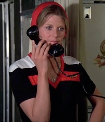 And move she did, because in the next scene the passengers begin boarding the flight, which means Jaime has to transition from I-love-my-job as ticket counter clerk to I-love-my-other-job as stewardess (yes, in this episode we'll adopt the official 70s title for flight attendant). In her new position, Miss Winters gets to bionic eavesdrop on everybody's conversations to screen out any possible terrorist suspects who might try to nab Rudy, but chooses to ignore the bad guys while they freely mention packing GUNS in cargo, and instead, zones in on the juicier gossip from the other passengers—a colorful assortment of missionaries and drunks and extras.