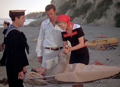 Beach Blanket Bingo: In the closing scene on the beach, I am immensely relieved to learn all our passengers and characters really DID live, and we weren't going to have to watch 6 seasons of Lost afterlife/purgatory/parallel universe/orwhateverthehellthatwas drama. Although it is tempting to take this opportunity to pretend Jaime didn't really have to wear this uniform, and that these survival lessons were merely part of her struggle to come to terms with her go-go boots.