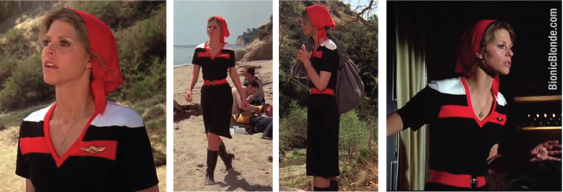 Ugh. When I first saw this uniform that Jaime is forced to wear for this entire episode, I winced a bit okay I screamed. And then I decided to write the 70s and beg them to take this fashion ensemble back. After after a while (naturally with the help of a couple martinis), the initial shock wore off for me and I began to build an immunity and actually even sorta started digging her go-go boots. Especially when I discovered this old Southwest Airlines photo and realized that the Bionic producer people actually weren't making this up. This fashion torture was REAL. (I bet these poor retired flight attendants are in wardrobe support groups now. If not, please don’t hesitate to write Dr. Sommers. Trust me, she feels your pain.)