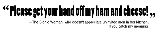 Yay, and then with the camera angle cleverly blocked so we are spared from having to see Rudy's blood and innards, we hear sizzling grill sounds and watch a puff of smoke, so we know that burger is burned shut! With tears in her eyes, Jaime assures Rudy he's going to be okay now. In this moment of tender irony, we realize the bionic doctor wound up being saved by his own bionic finger. #OrSomething
