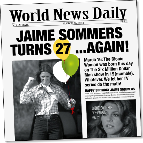 There doesn’t appear to be an actual birth date documented within The Bionic Woman series itself—which is ironic, because producers were curiously stuck on describing her like a football player and couldn’t seem to tell us often enough what Jaime’s age and weight were—the very two secrets we ladies never reveal. Wait..where was I?