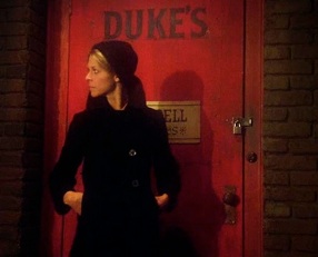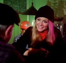 Outside Duke's pool hall, some drunk guy comes staggering out the door and Jaime makes a very Judgmental Face™ at him. (Hmm, let me ponder this stare down while I swill my 3rd Martini…) Inside the bustling, smoke-filled joint, Jaime and Bobby take a seat at the bar, and after a moment of looking around, she blurts out the most shocking of lines: