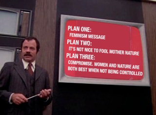 Lightening Bolts: Steve and Jaime are being chased by the remaining 3 Fembots, one of whom is Katy, dispatched from the home office wearing black uniform 001— which of course makes sense because she was the very first Fembot he introduced in Part 1. Steve tells Jaime they have to hurry and climb this dangerous waterfall cliff and get across that dam because the lightening is getting really bad, and—as you may recall from a scene demonstrated by Steve while playing around with the weather machine in part 1—their bionics are like lightening rods, so it's really not such a good idea to be out here in this inclement weather today.