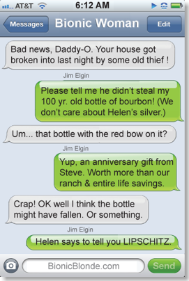 Jaime rings up Oscar at her Coach House (where he was apparently waiting for his piece of carrot cake?), and gives him the unfortunate blackmail news. "And you agreed to help him?" Oscar worries, because he just ran Inky's files and this schlump has a string of arrests plus a monkey who foiled his last burglary attempt by triggering an alarm, and Jaime LOLs and Oscars says yeah well even if we can obtain Inky's film of you, he will still have sensitive information about your bionics so how ‘bout we play along with him?