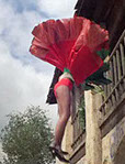 Now about this Spanish dance outfit with green skirt and white ruffled blouse... while a bit over the top, in retrospect it is actually kind of cute, plus this is the only episode in the series where the Bionic Woman got to skip the dizzy blonde wig to became a brunette. And yeah, in a balcony jump they totally did film her skirt flying up to reveal red panties—which makes this the first and last time lingerie was ever introduced in her wardrobe.