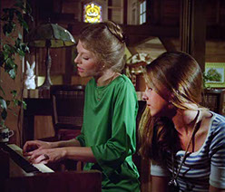 Suddenly I was watching Bionic Glee. It was actually a very pretty little song, and darned if it didn't look like Ms. Wagner was genuinely playing the piano herself live in this scene, too. (If she wasn't, give her another Emmy for play acting this so perfectly.) Anyway, this was one part I did go back to re-watch and transcribe, because I am now convinced it was a cleverly disguised secret “Feelings” type love message to her Bionic BF on ABC that NBC never picked up on as a contract violation: