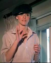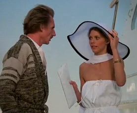 Jaime points out that Blowmont lies about everything when he tries to identify her as the OSI agent Jaime Sommers, and then she hysterically turns her flirtatious attention to the yacht owner to ask "Vat is jur name, cue-tee?"