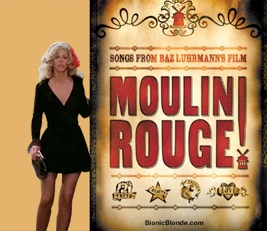 Moulin Blonde: So then the camera cuts to Jaime wearing fishnet stockings, a lacy, low v-neck black mini-dress and a platinum blonde wig—much like the one she wore in Over The Hill Spy. Hurry Jaime you'll be late for your song and dance number at the Moulin Rouge!