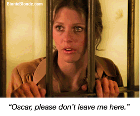 Jailhouse Rock: From inside her cell, Jaime whispers to Oscar that "this thing would open up like a sardine can" as she bionic-bends the bars to demonstrate. But tisk tisk Oscar says she's not allowed to escape because then she really will look guilty …so Jaime bends the steel back.