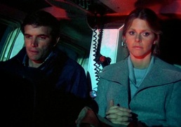 Make-Out Point: Per her instructions, Jaime arrives at the base after dark, parks her car and waits. But hark what is this? She bionic eavesdrops on another couple parked in their car—it's the heli pilot with his girlfriend, who mentions their upcoming trip to Mexico and then they start smooching and Jaime gets all embarrassed and says "Ooh! sorry kids!" So did she direct this apology towards them, or to the kids watching in the audience who think kissing is gross? Because ickkk, gross!