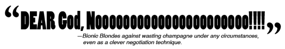 Get This Woman A Refill: Jaime reminds Harris she hasn't heard an offer yet, (because you know, she's deaf in one ear). He proposes she can earn $1 million dollars in the next 24 hours. (OMG. Gurl okay now's a good time tell him about your bionic ear, point out the record Nielsen Ratings and how much all the little children of the world adore you, then counter for $2 mil plus syndication royalties and a double-wide star trailer. But don't dump your champagne this time. And darlin’ please don't forget to make him throw in some DESIGNER SHOES!!)